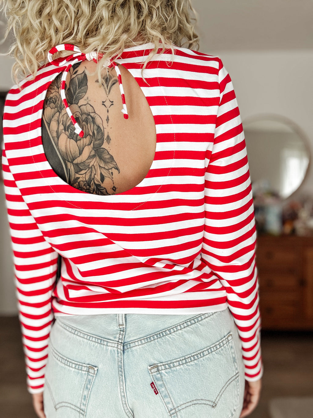 BEKKA- ein sweeter und bequemer Pullover zugleich. Highlight ist hier der Rückenausschnitt welcher so konzipiert wurde, dass der Bh dennoch verdeckt bleibt.