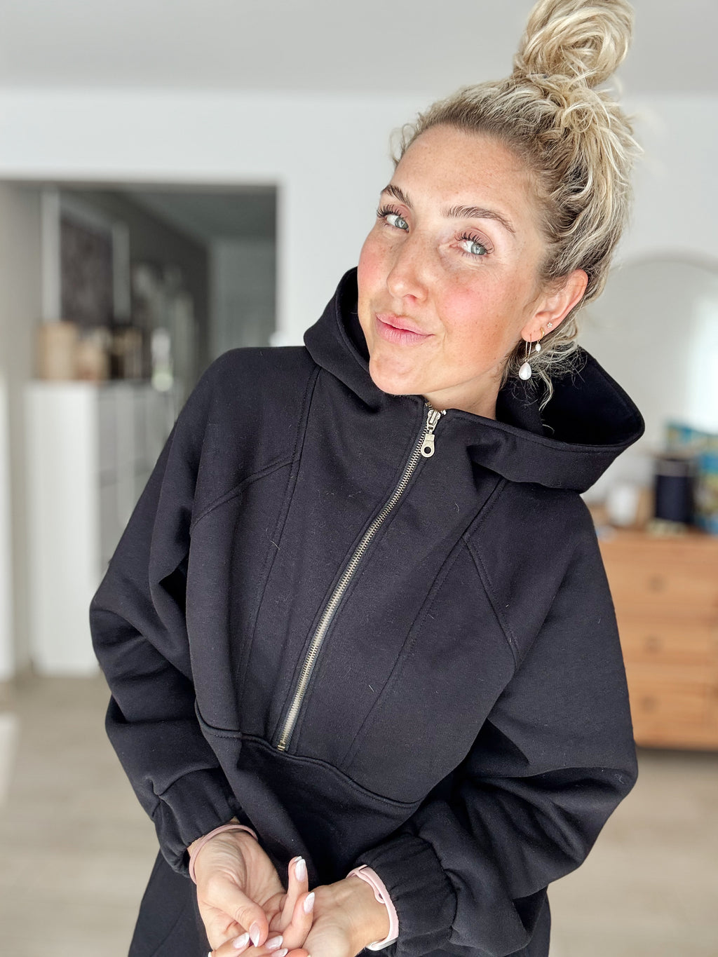 Frau Kauf – Oversize Hoodiekleid mit Zipper