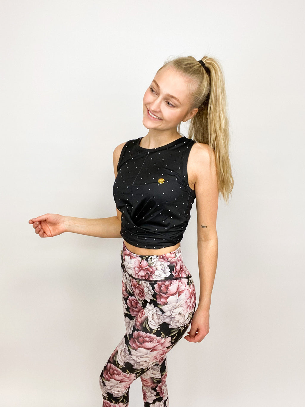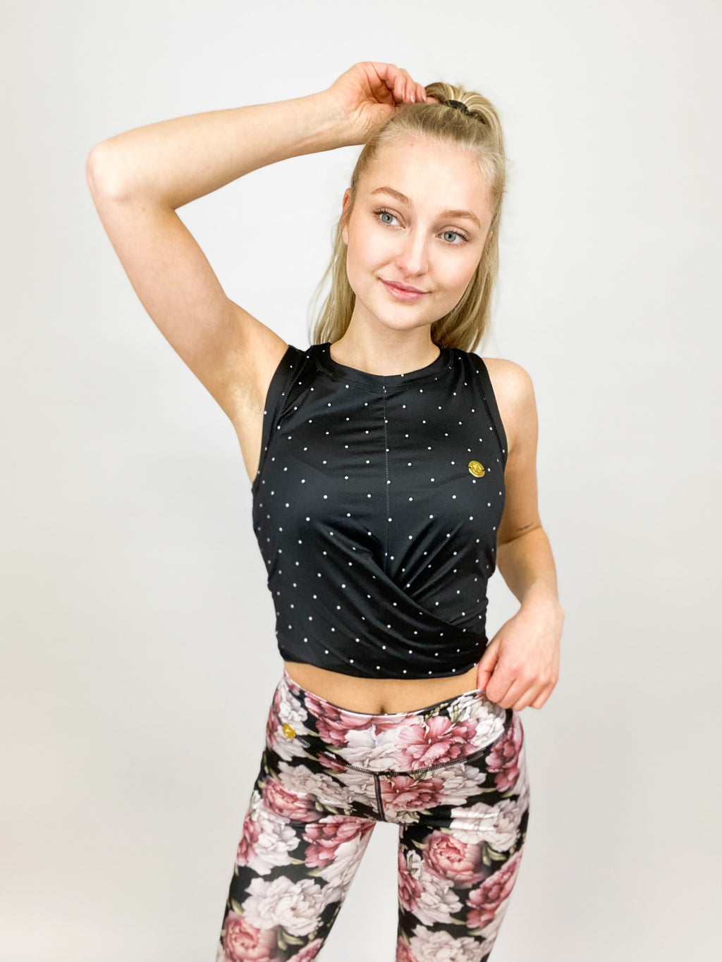 Unser gezwirbeltes Croppedtop zeichnet sich durch raffiniertes Aussehen aus, aber auch durch Funktionalität wie Atmungsaktivität und schnelltrockenen Effekt des Stoffes.