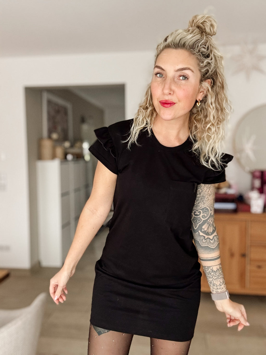 HAZEL GRACE - ein stylisches, leger geschnittenes Kleid , welches durch die Rüschen am Arm einen echter Hingucker unter Basickleidern darstellt. Es ist sowohl im Alltag aber auch zu besonderen Anlässen einsetzbar.