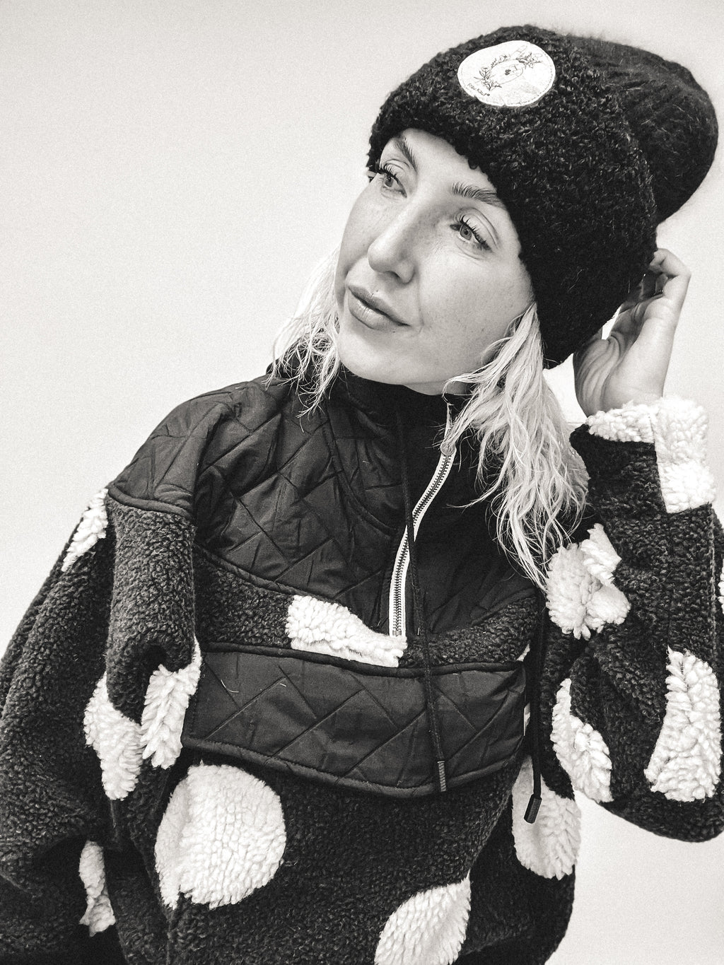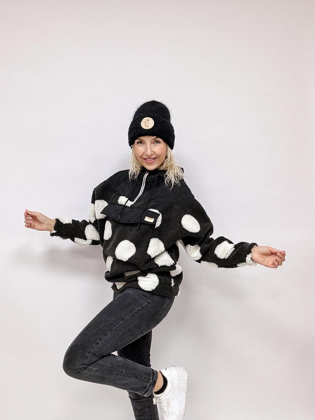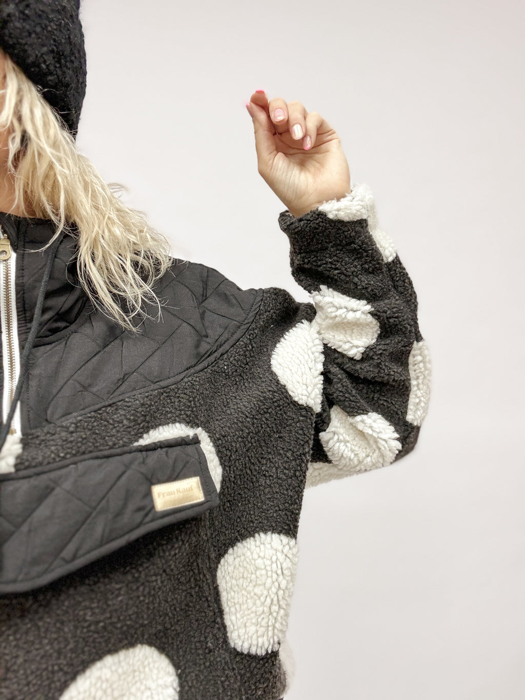 Hochwertiger Windbreaker aus TEDDY und STEPP. Absolut angenehme Passform, großer Halsauschnitt dank Zipper und verschließbarer Kordeln.  Die große Bauchtasche bietet viel Platz für Handy, Taschentuch und Co, ist aber gleichzeitig ein optisches Highlight dieser Jacke, auch dank unseres veganem oder goldenem (Leder)emblem.