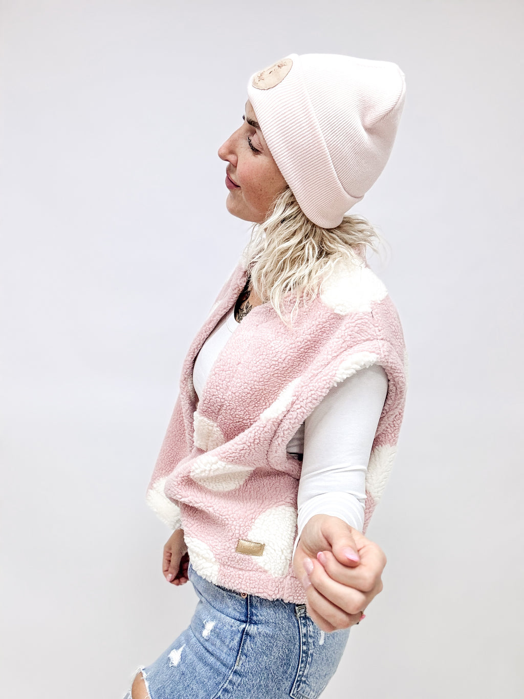 Anmerkung: Teddystoffe neigen durch Reibung zu Pilling. Nutze zur Entfernung einen Fusselrasierer oder wasche die Weste und warte bis sich die Fussel verfilzen und anliegen.
