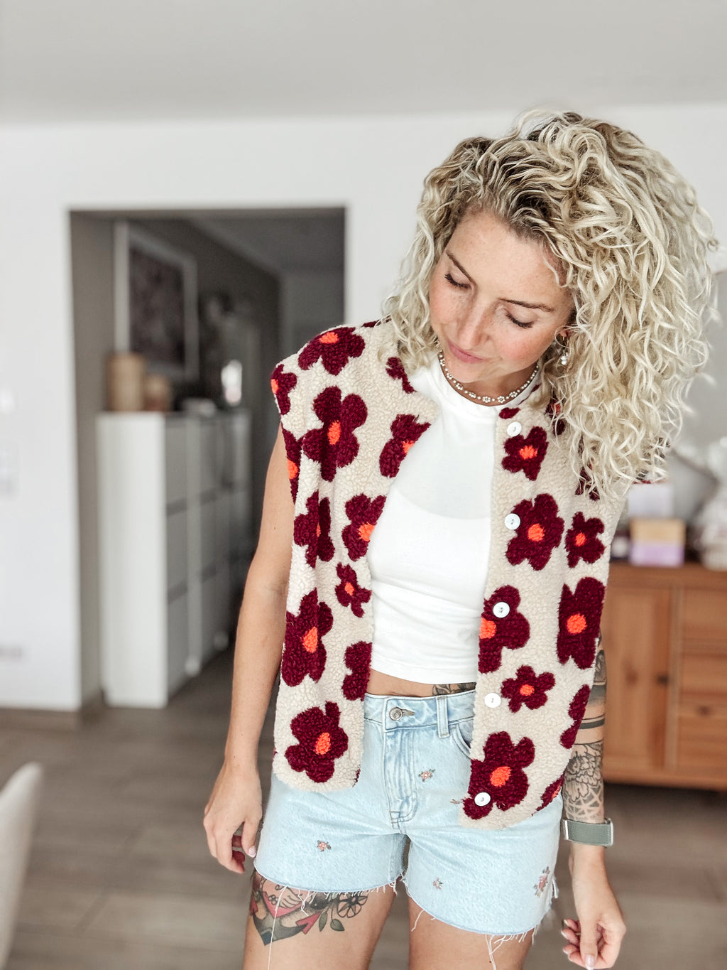 Anmerkung: Teddystoffe neigen durch Reibung zu Pilling. Nutze zur Entfernung einen Fusselrasierer oder wasche die Weste und warte bis sich die Fussel verfilzen und anliegen.