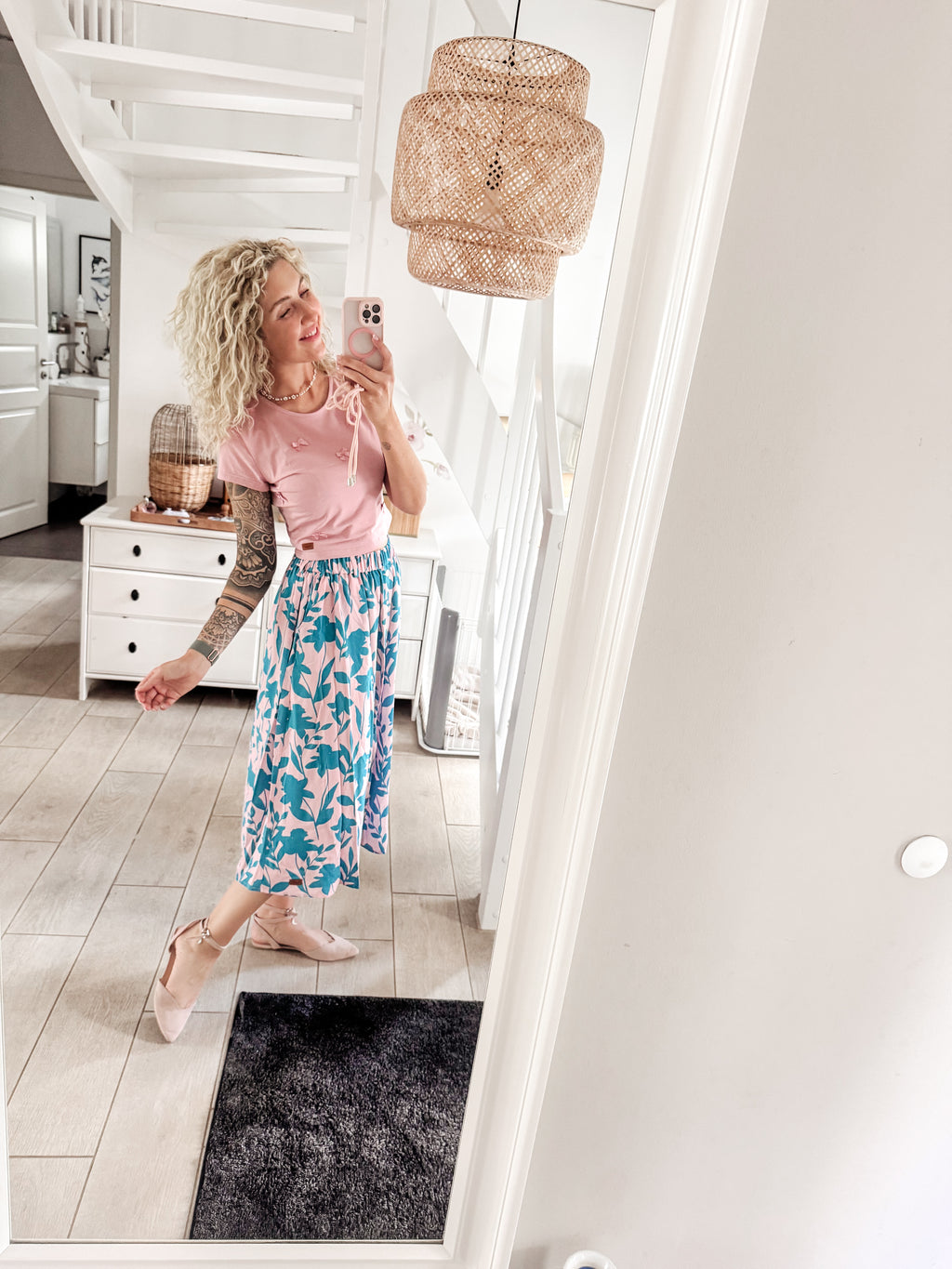 Ein traumhaft schöner und bequemer Wadenlanger Rock mit Schlitz und Knopfleiste. Du kannst in dank des Gummibundes in der Taille tragen oder auf Hüfte, wobei wir ersteres stylischer finden, vor allem zu unseren Cropped Tops. Mit diesem Style holt ihr Eure Taille ins Rampenlicht, fühlt Euch gut angezogen und Stilsicher.