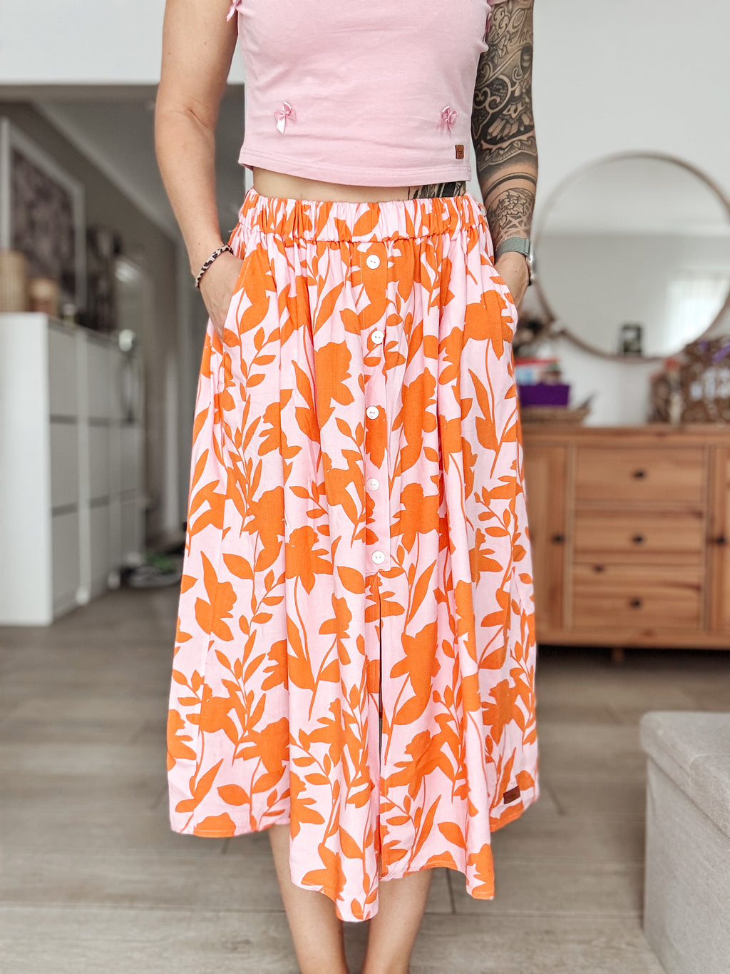 Ein traumhaft schöner und bequemer Wadenlanger Rock mit Schlitz und Knopfleiste. Du kannst in dank des Gummibundes in der Taille tragen oder auf Hüfte, wobei wir ersteres stylischer finden, vor allem zu unseren Cropped Tops. Mit diesem Style holt ihr Eure Taille ins Rampenlicht, fühlt Euch gut angezogen und Stilsicher.