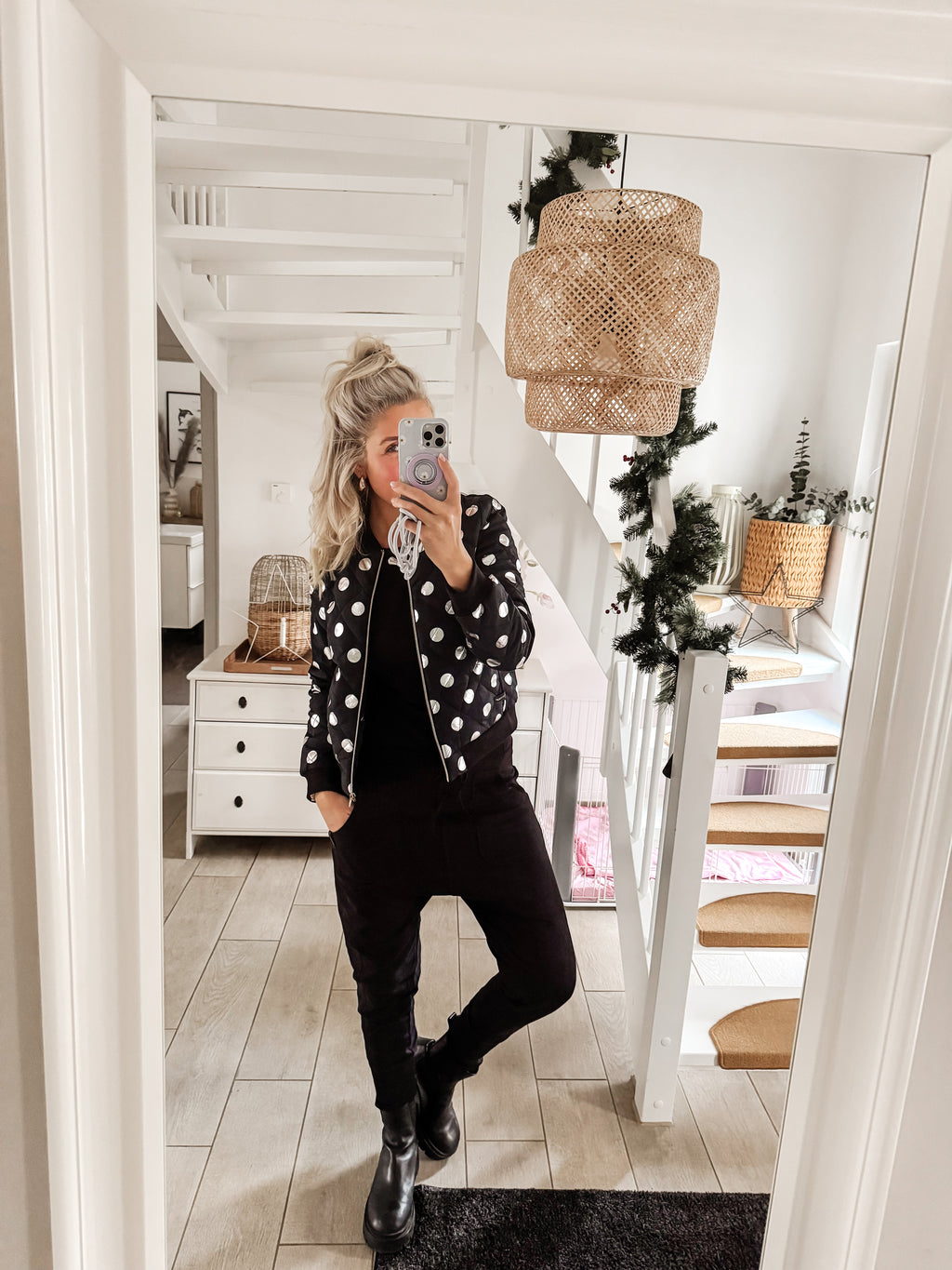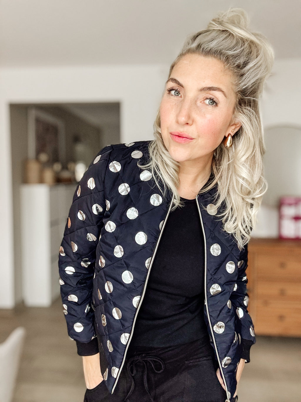 Penelope- eine in diesem Fall Blousonjacke aus Stepp mit goldenen Reißverschluss und veganem Emblem. Diese Highlights und die faire Produktion machen diese Jacke zu einem echten und moralisch vertretbarem Luxusartikel. Fünf von Zehn Personen werden dich sicher auf diese Jacke ansprechen, dem Rest hat es die Sprache verschlagen. Du bist es Wert!