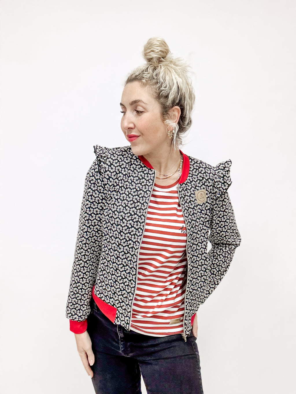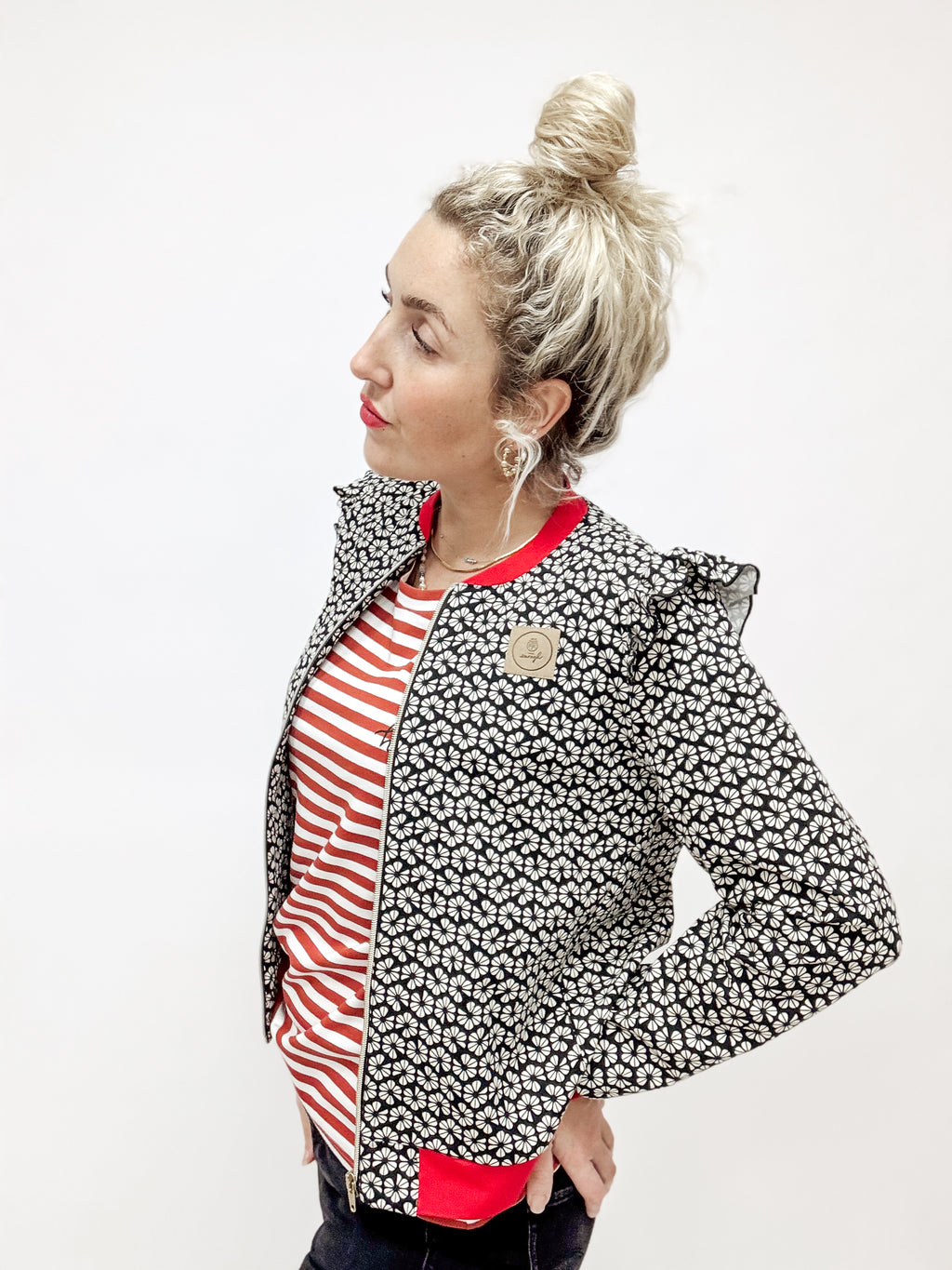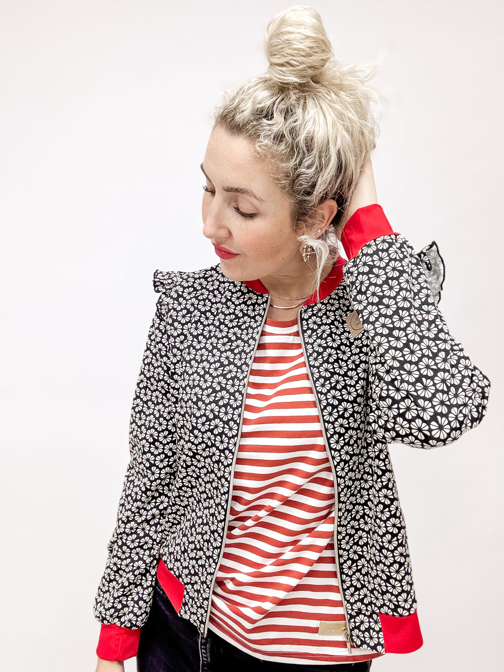 Penelope- eine in diesem Fall  Blousonjacke mit hohem und deutlich spürbaren Baumwollanteil , einem goldenen Reißverschluss und veganem Emblem. Diese Highlights und die faire Produktion machen diese Jacke zu einem echten und moralisch vertretbarem Luxusartikel. Fünf von Zehn Personen werden dich sicher auf diese Jacke ansprechen, dem Rest hat es die Sprache verschlagen. Du bist es Wert!