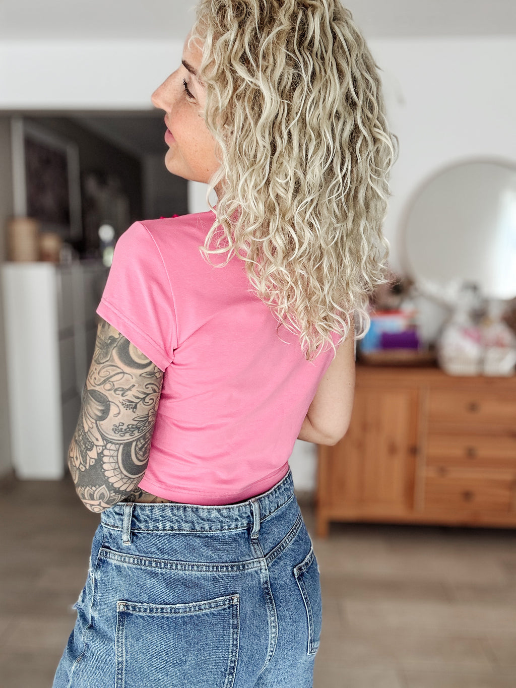 Figurbetontes Top mit niedlichen Accessoires. Perfekt in Kombination mit unseren Röcken oder Shorts.