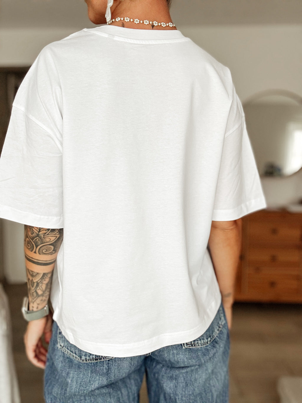 Groß geschnittenes , stylisches Baumwollshirt im Oversizelook- perfekt zur Leggings aber auch zur Jeans.