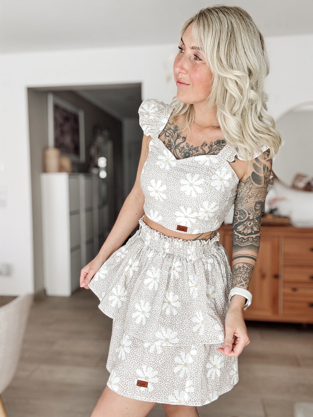 VOLLA- unser wunderschöner gesmokter Rock in einheitlicher Größe. Du kannst diesen Rock von Größe XS-XL tragen oder wenn du schwanger bist.
