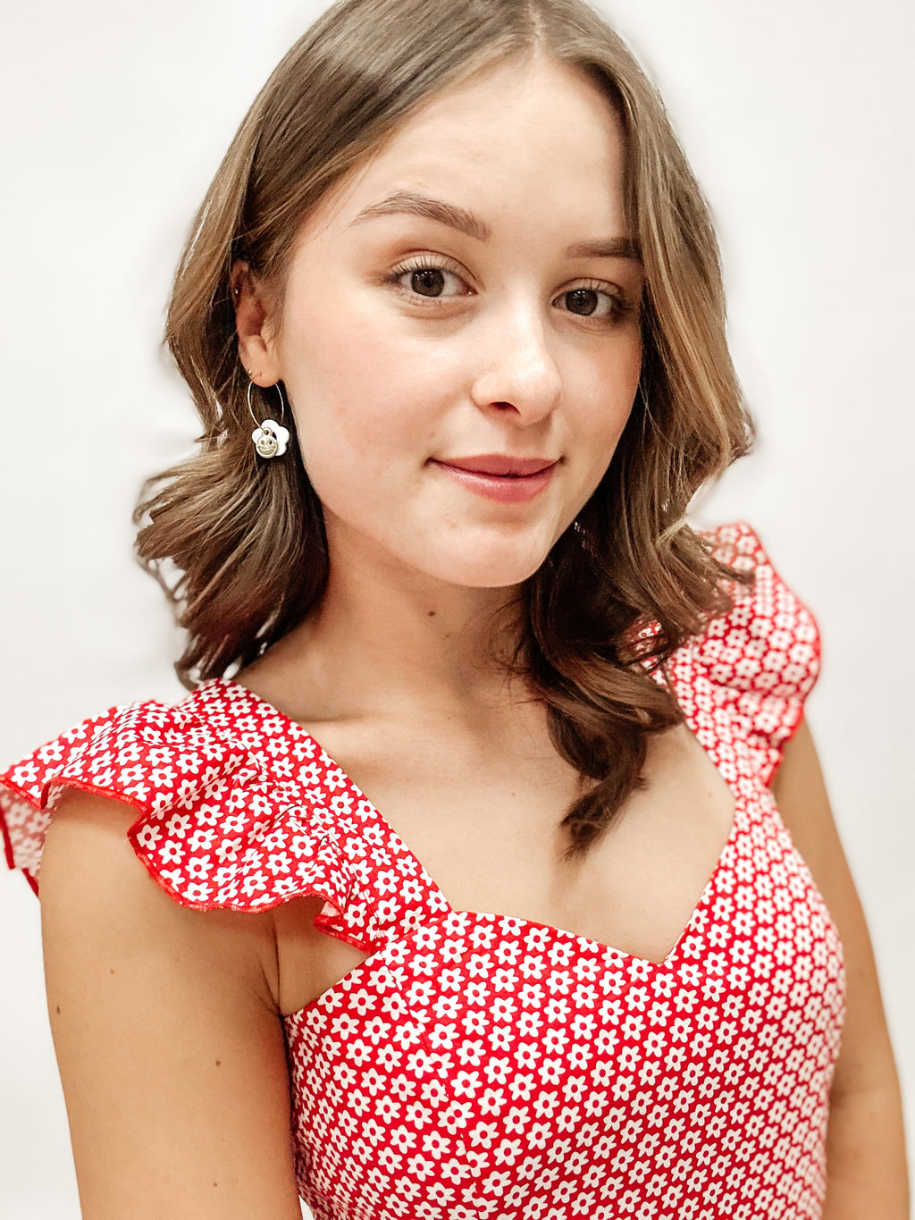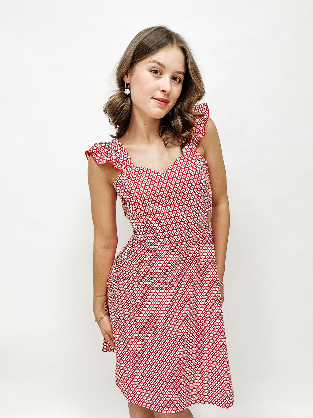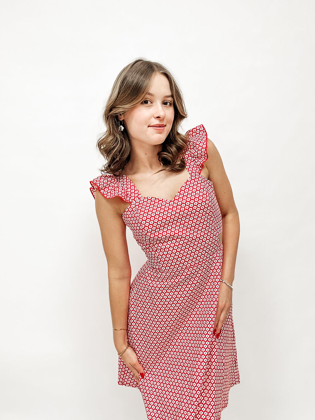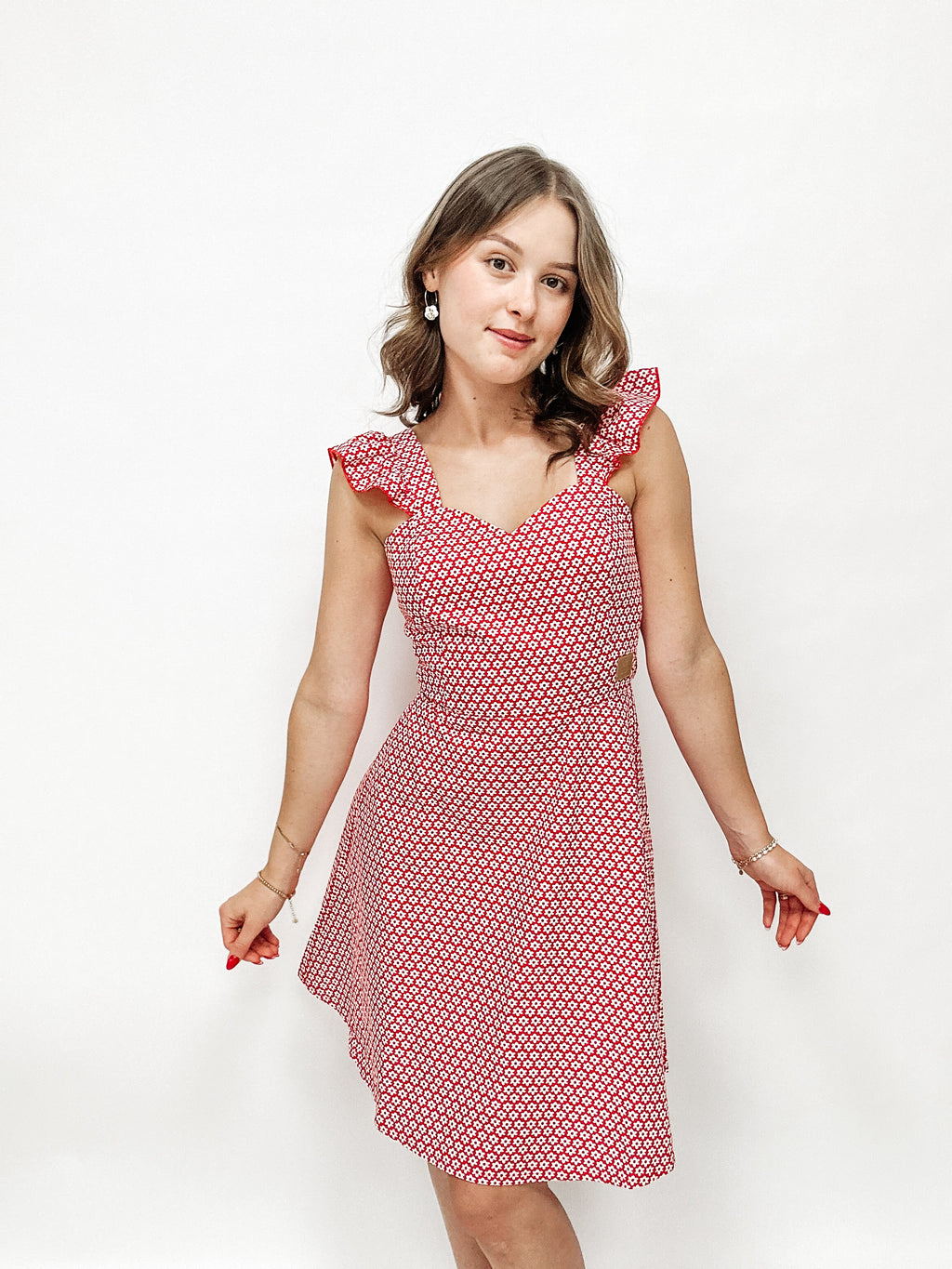 Wir haben hier einen wunderschön verspielten Herzausschnitt und niedliche Rüschenarme.