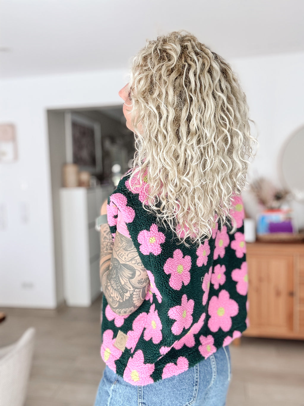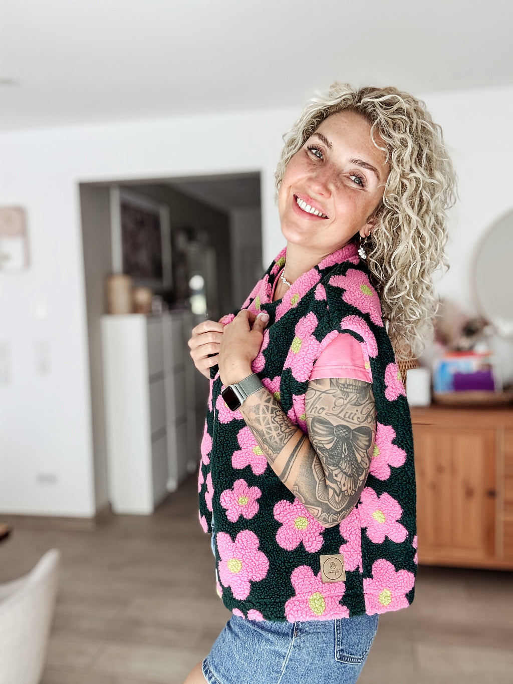Anmerkung: Teddystoffe neigen durch Reibung zu Pilling. Nutze zur Entfernung einen Fusselrasierer oder wasche die Weste und warte bis sich die Fussel verfilzen und anliegen.