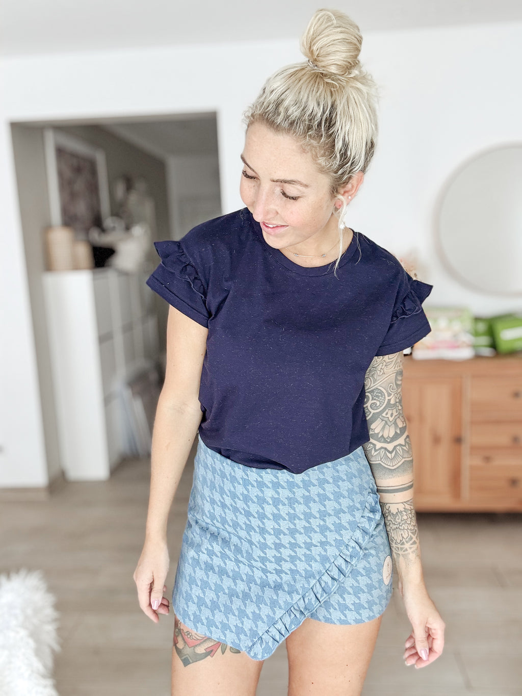 SKORTY- unser Highlight der Frühjahr/Sommer Kollektion! Shorts und Rock in einem kombiniert.Mit einer Rüschenleiste verziert. Ein Reißverschluss und ein dehnbarer Bund vereinfachen das Anziehen. Unser wunderschönes veganes Lederemblem rundet den Look ab.